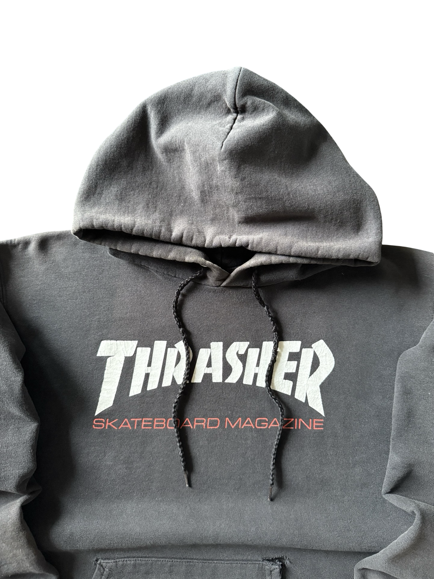 2000s lightly distressed Thrasher logo skate hoodie (SMALL)